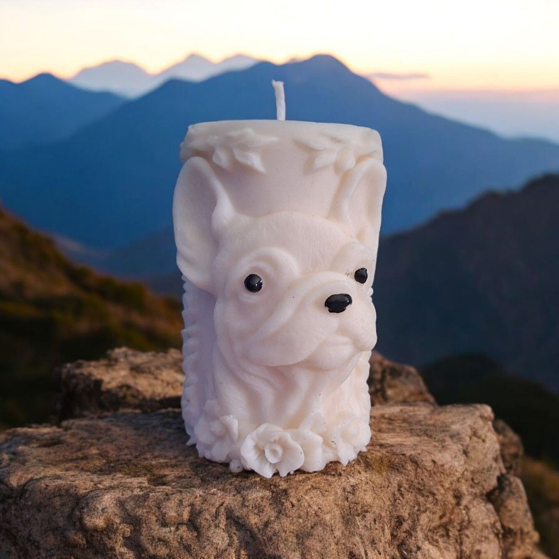 Jolie bougie bouldogue francais fait main a base de cire de colza de parfum de grasse sans cmr sans phaltate